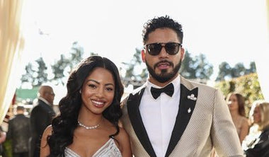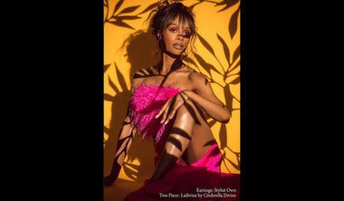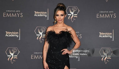 La personalidad de televisión Scheana Marie ( @scheana ) lució CH147, un vestido de lentejuelas sin tirantes con ribete de plumas en negro mientra...