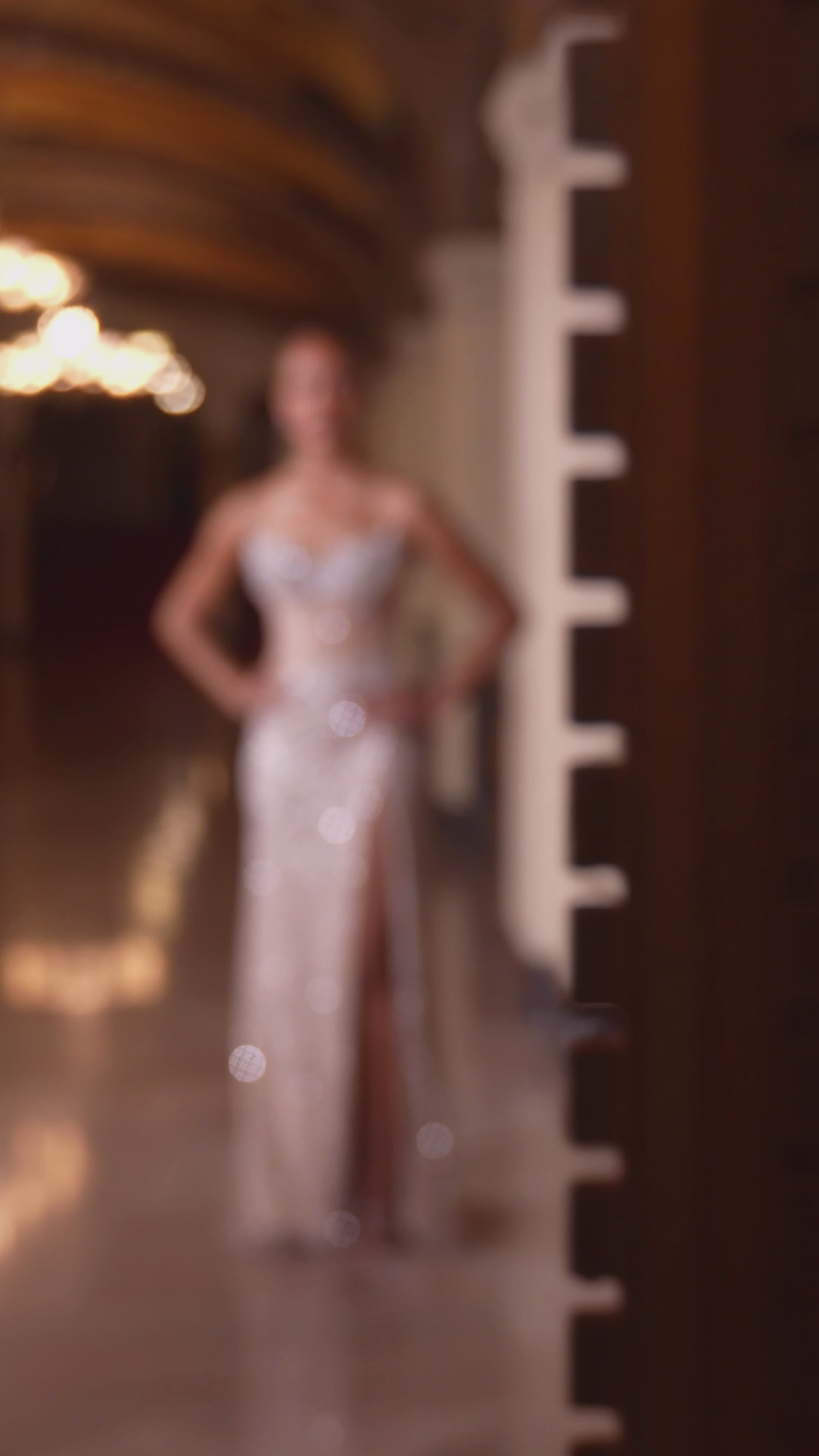 Fabric & Material: Crystal-embellished tulle with sheer corset bodice