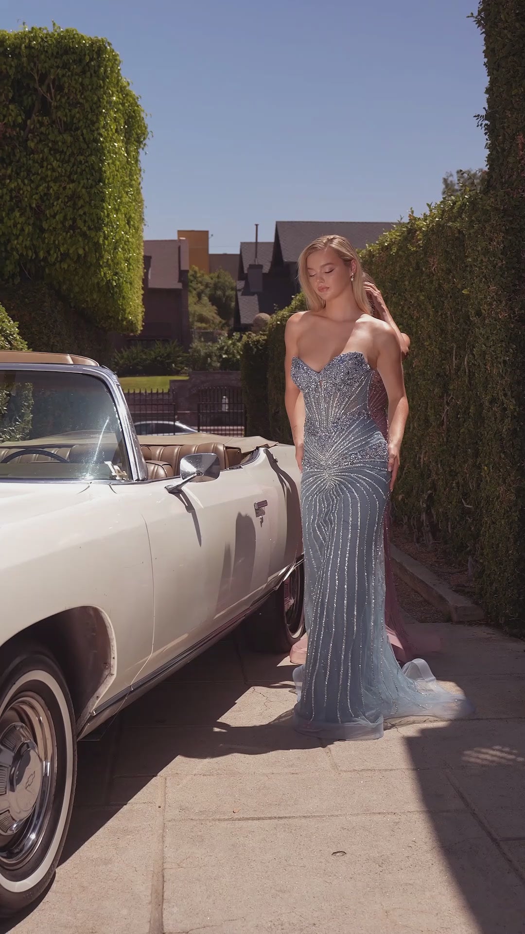 Make an unforgettable entrance in this mermaid evening gown, crafted with a strapless sweetheart neckline and a fully beaded bodice adorned with shimmering crystals and sequins. The figure-hugging silhouette cascades into a flowing glitter tulle skirt with a sweep train, while the lace-up corset back ensures a flawless, sculpted fit. Designed to dazzle under the lights, this gown is an irresistible choice for prom, black-tie events, and red-carpet moments.